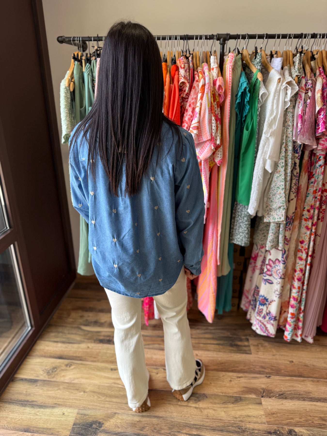 Son coton agréable et ses petits cœurs brodés apportent une touche délicate tout en restant facile à associer.