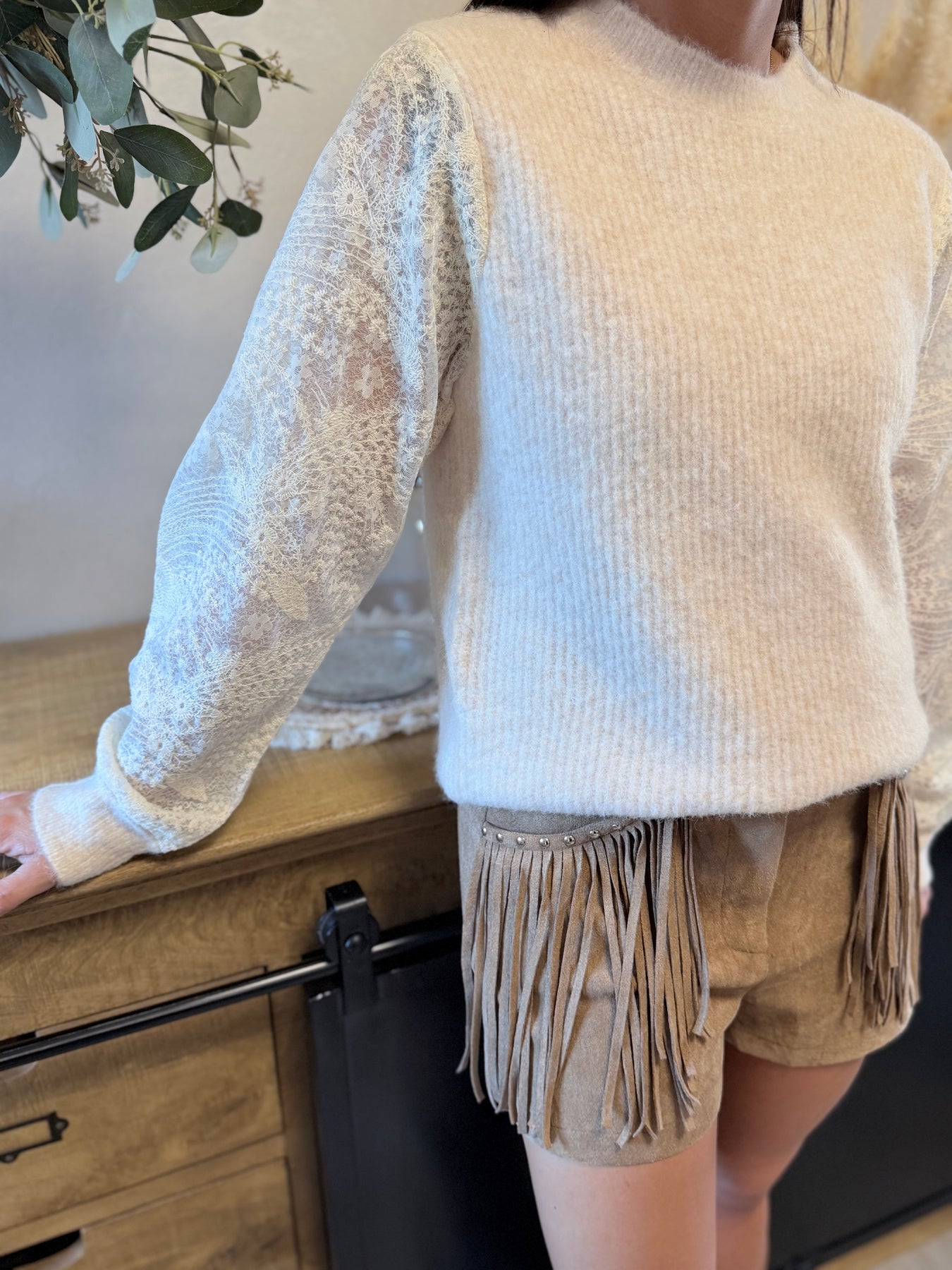 Le pull Dipa est la parfaite alliance entre confort et élégance ✨. Sa maille douce réchauffe, tandis que les manches en dentelle offrent une touche raffinée et féminine. On l’adore avec un short en suédine ou un jean clair pour un style chic et romantique.