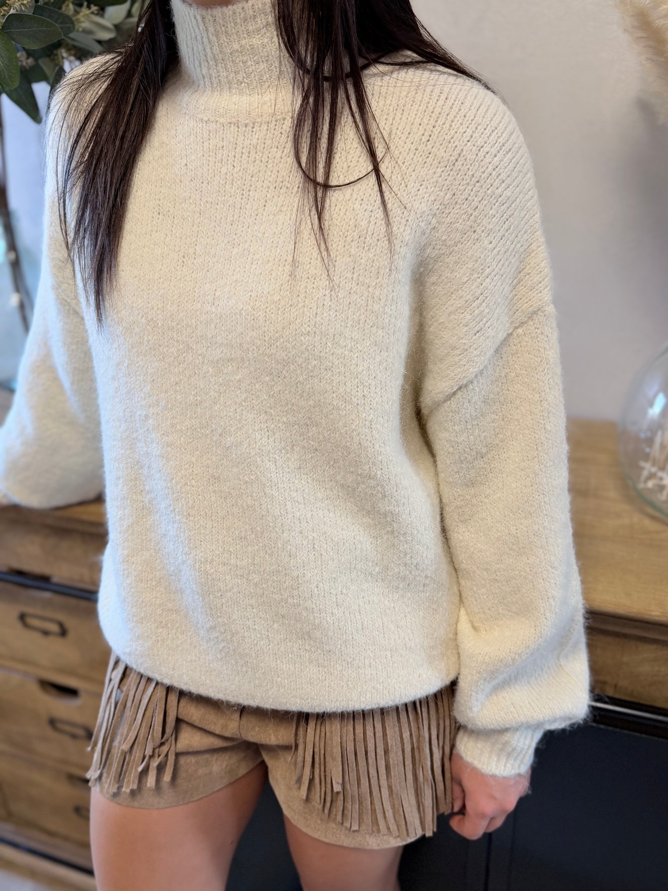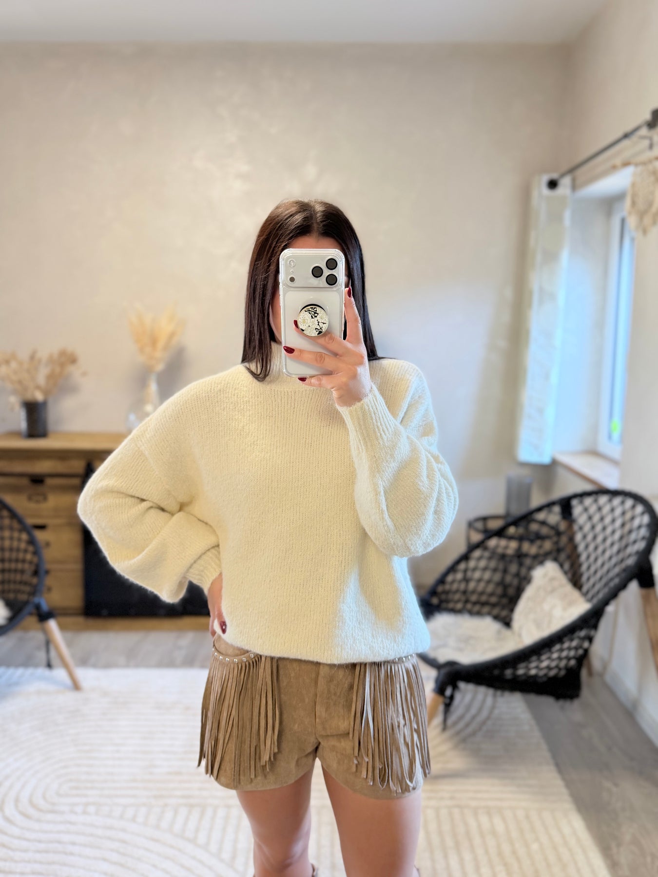 Le pull “Tina” allie chaleur, confort et simplicité avec sa maille douce et son col montant. Il se marie aussi bien avec un short effet daim et des bottes qu’avec un jean pour un look cosy du quotidien.
