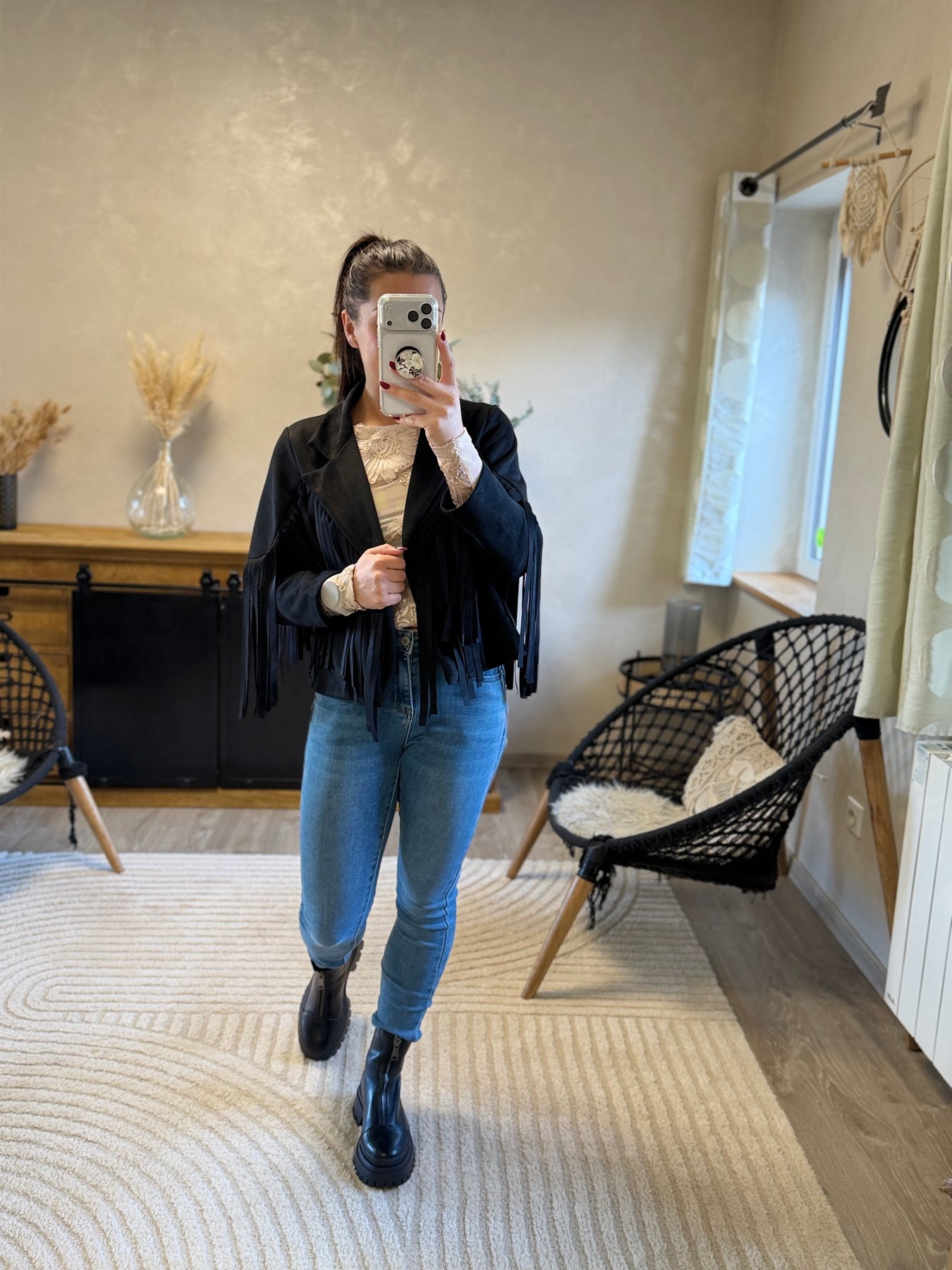Les franges apportent du mouvement et un vrai caractère à la tenue.