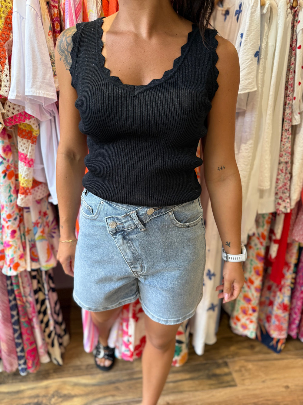 Top Noeline noir argenté