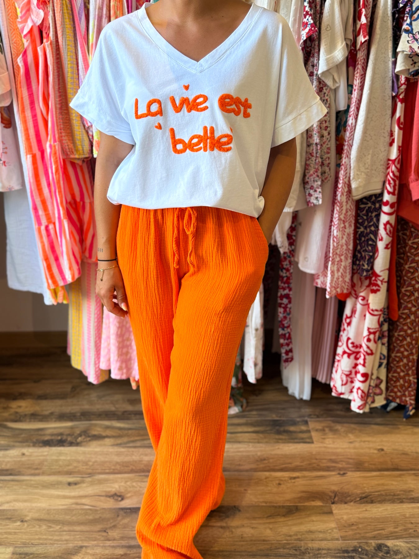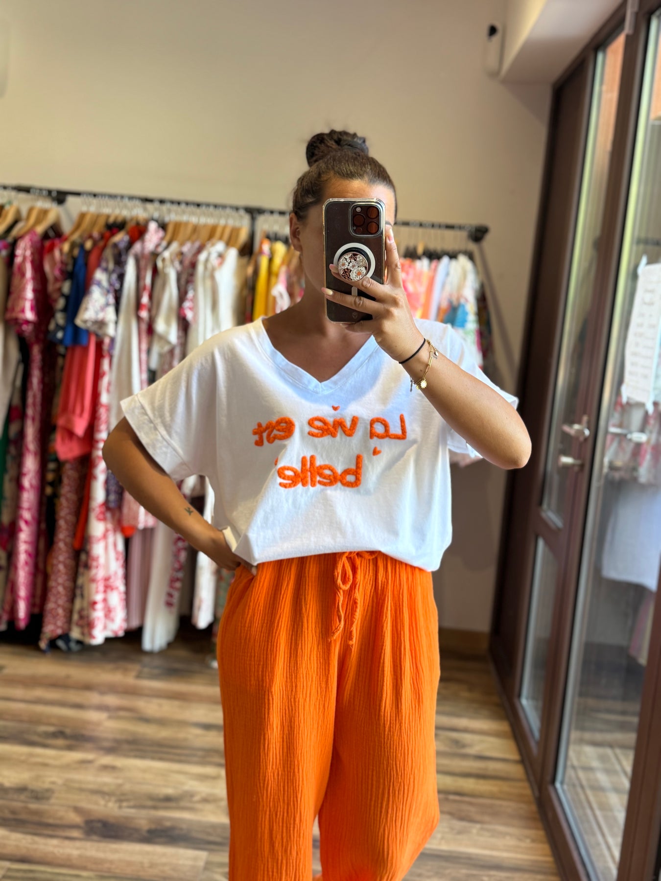 Tee-shirt “La vie est belle” curvy – Positivité & confort au quotidien 🧡