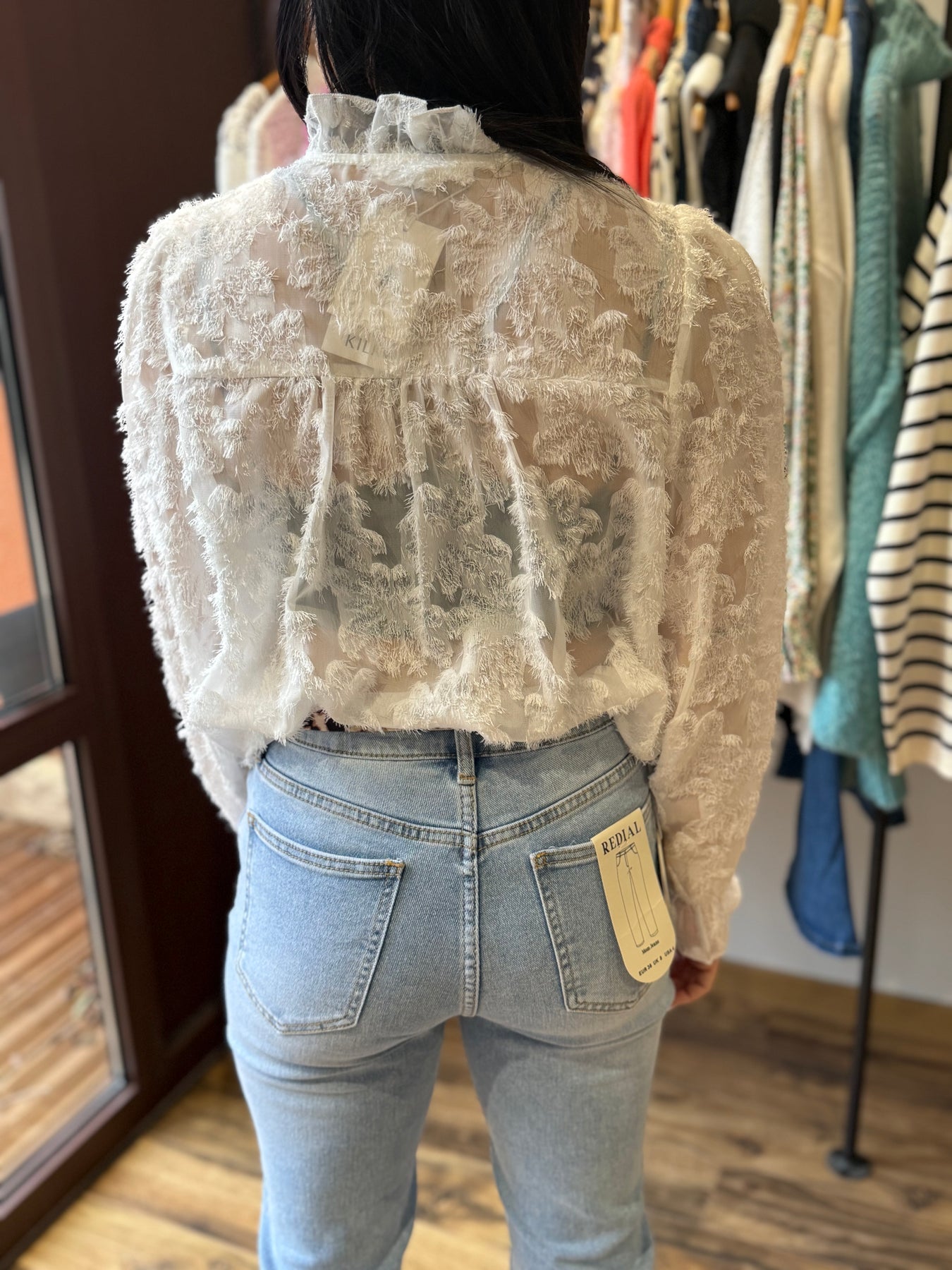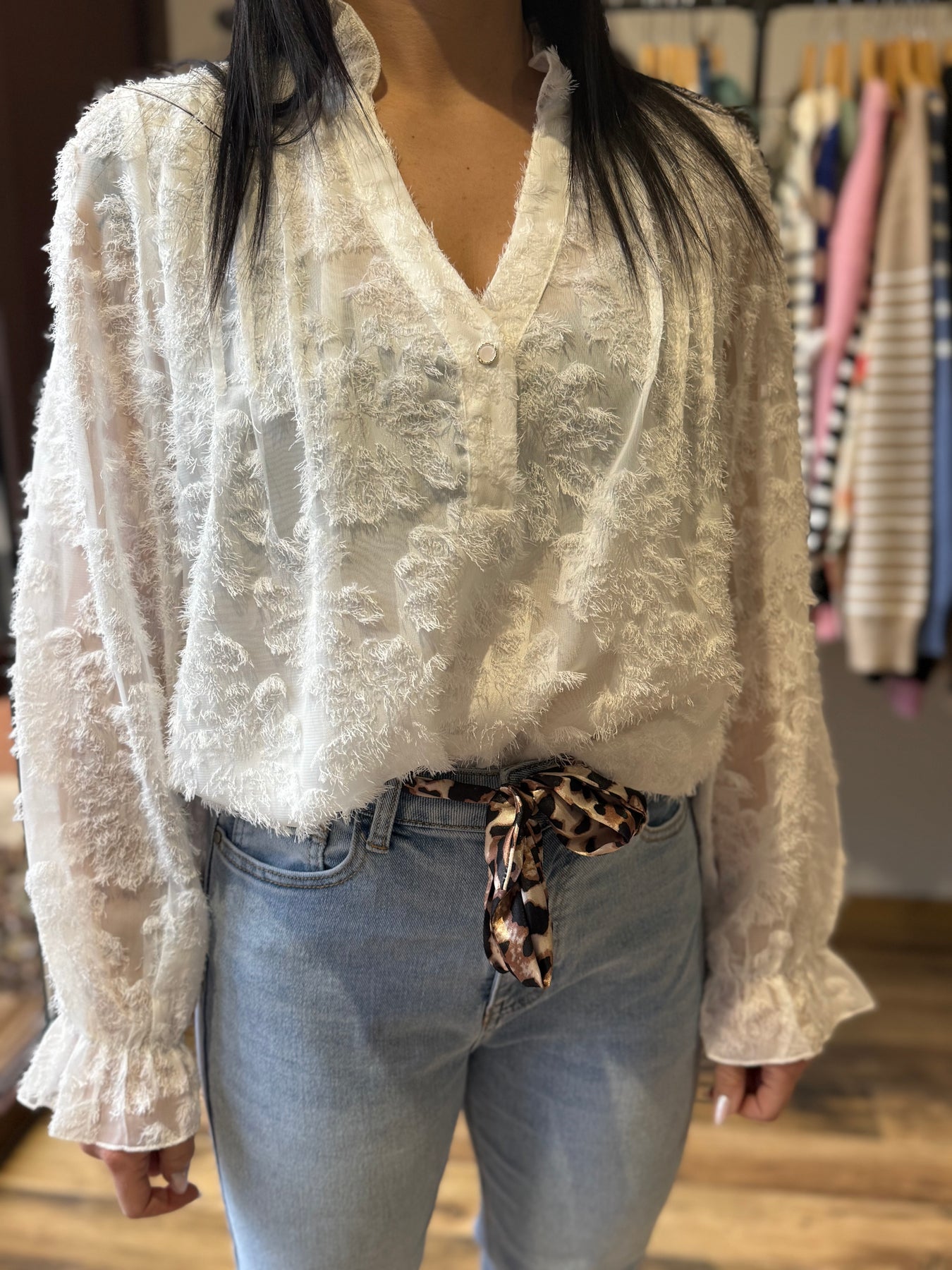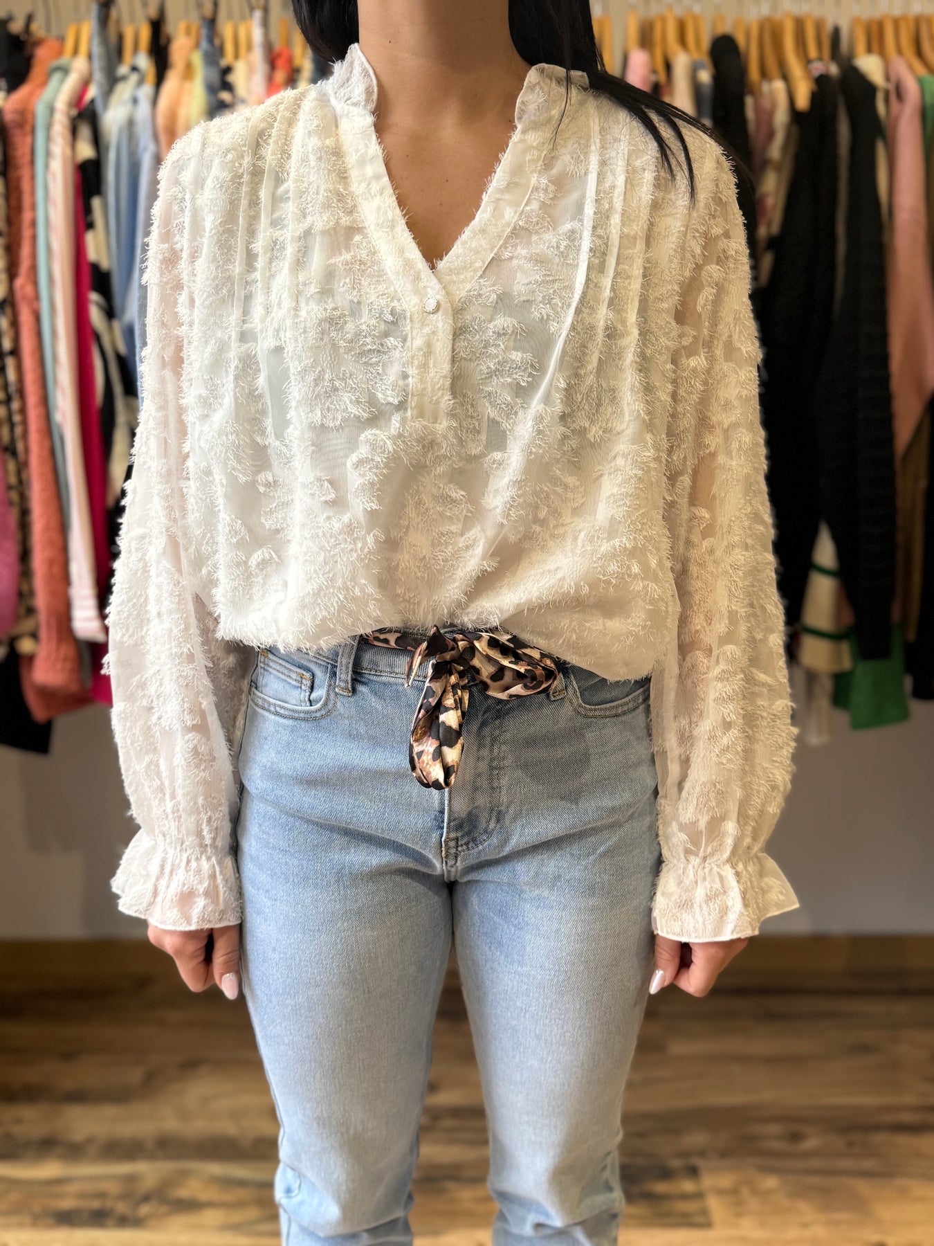 Alicia mesure 1m57 et met du 36 elle porte la blouse avec
