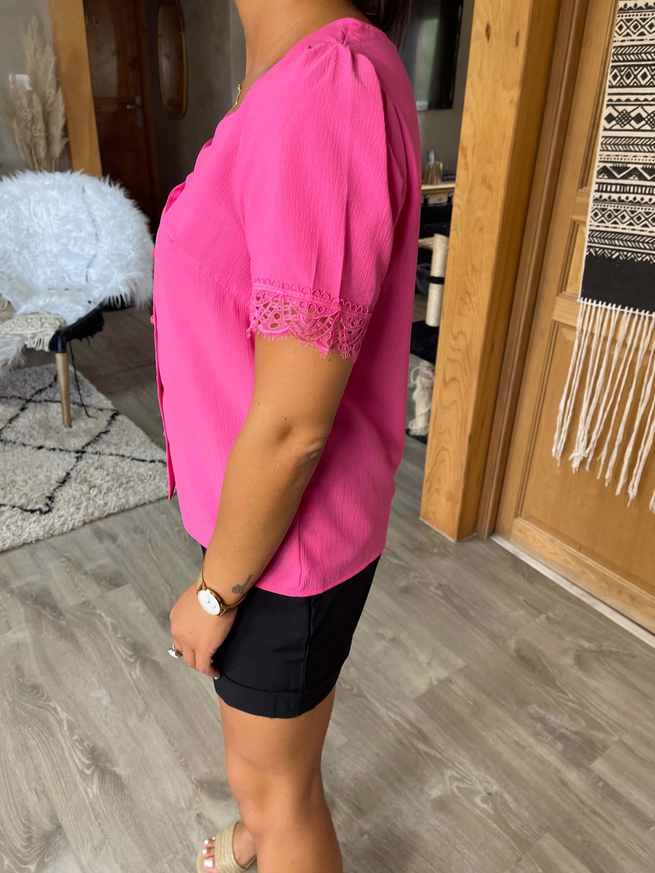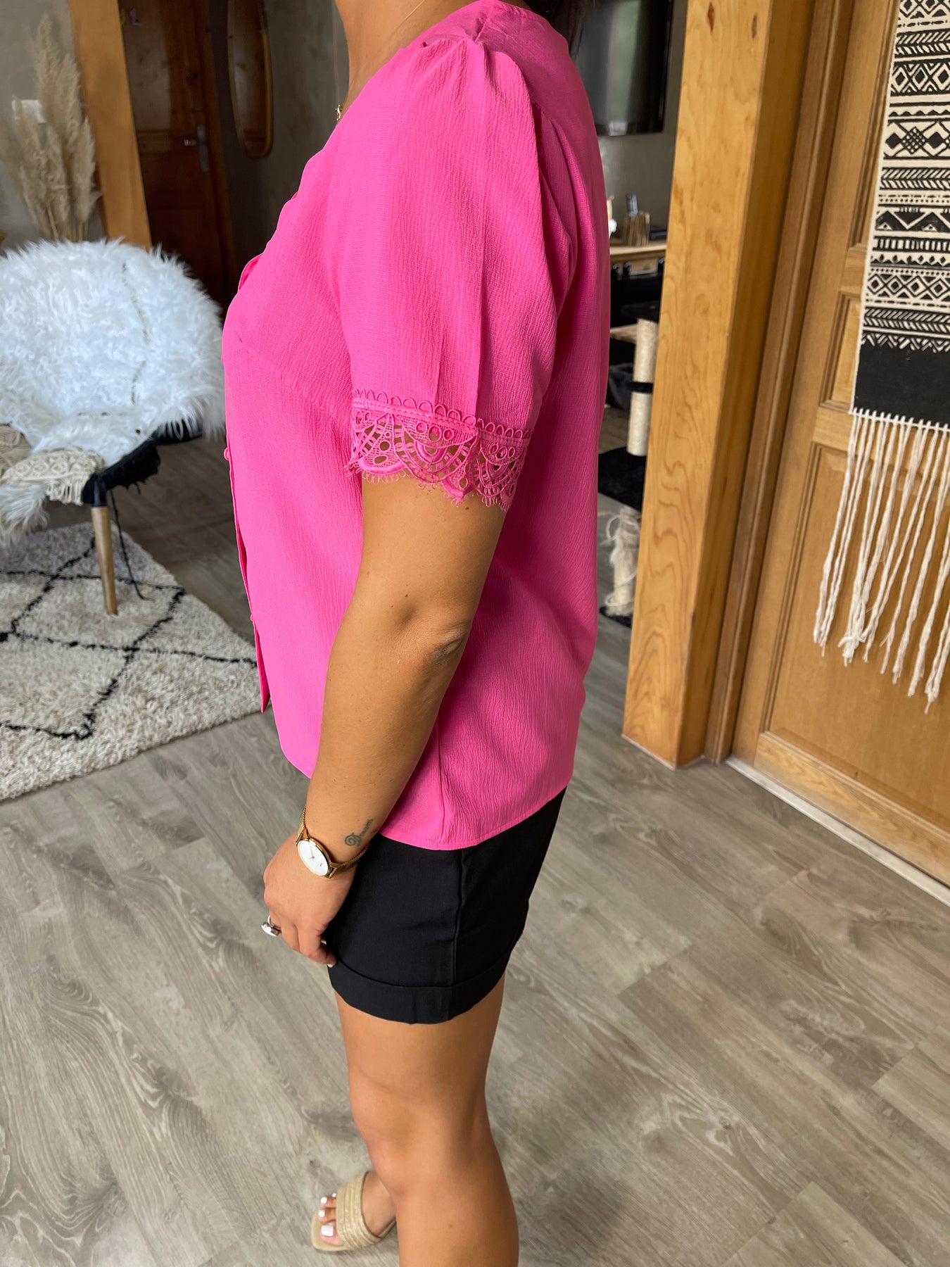 Alicia mesure 1m57 et porte la taille SM la chemise est associé au short YALLE
