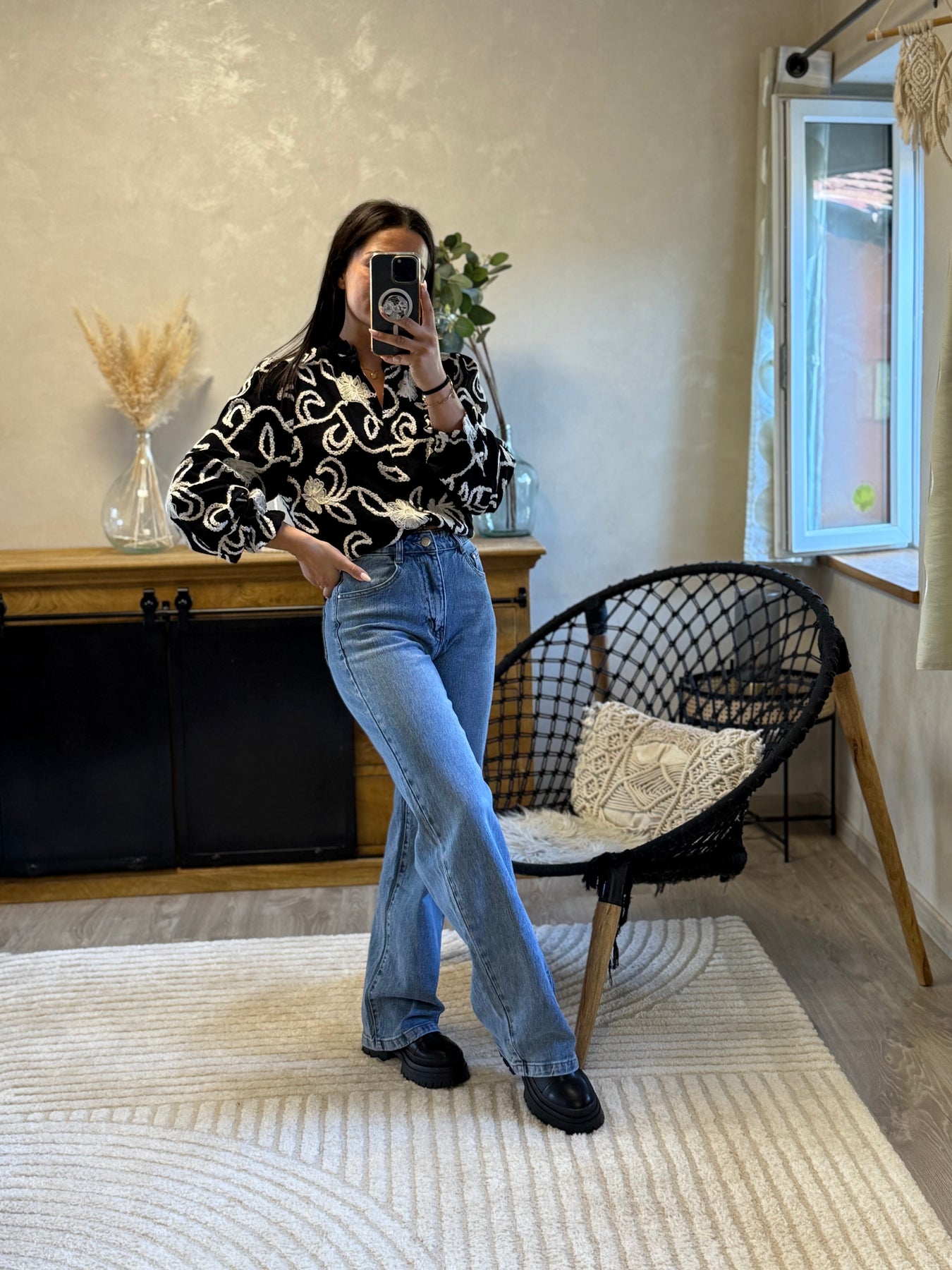 On craque pour son imprimé élégant en relief qui fait toute l’originalité de cette chemise ✨. Fluide, féminine et confortable, elle se porte aussi bien rentrée dans un pantalon tailleur pour le bureau que sur un jean pour un style plus décontracté. Une pièce forte qui donne du caractère à vos looks 🖤.