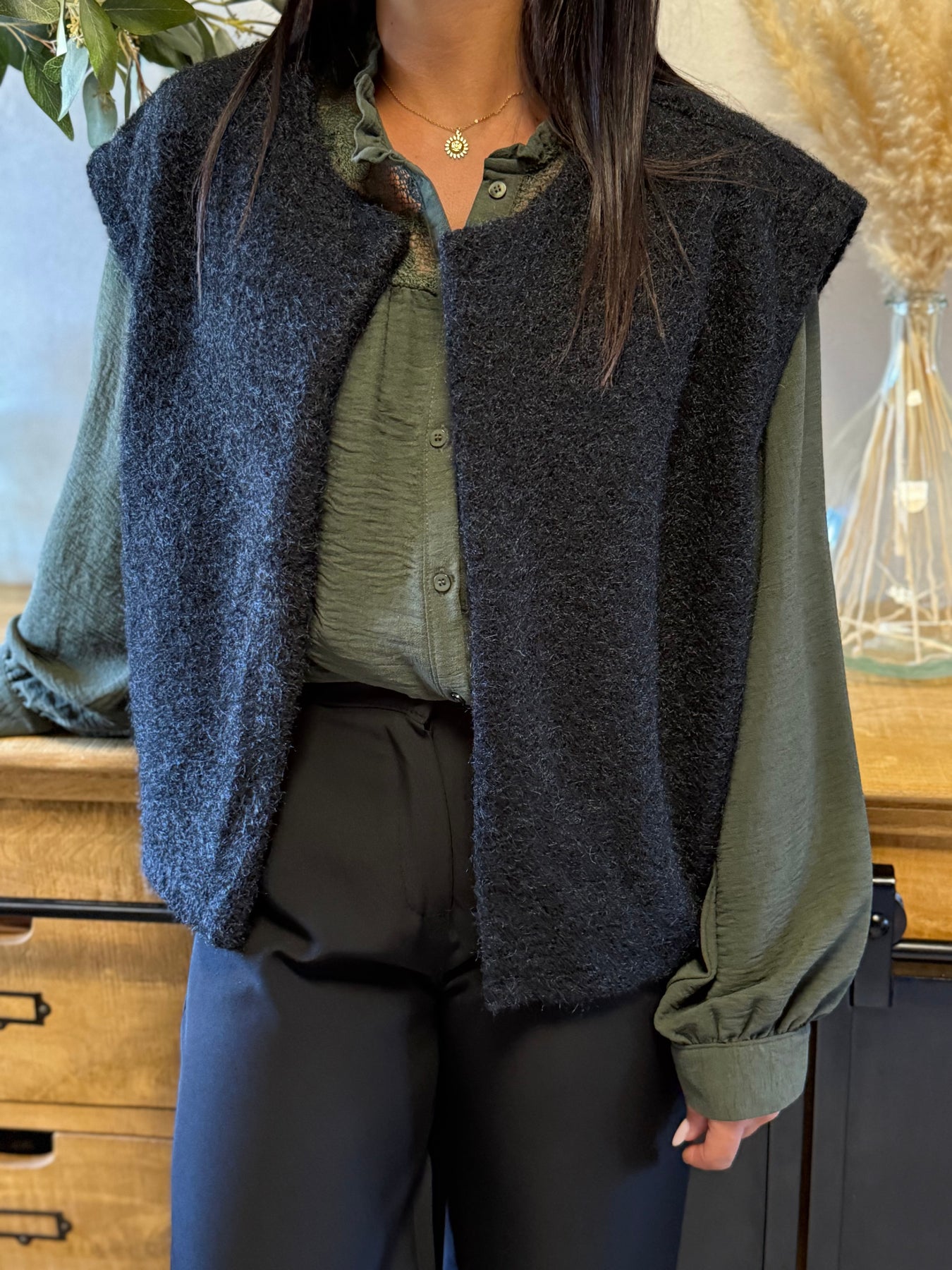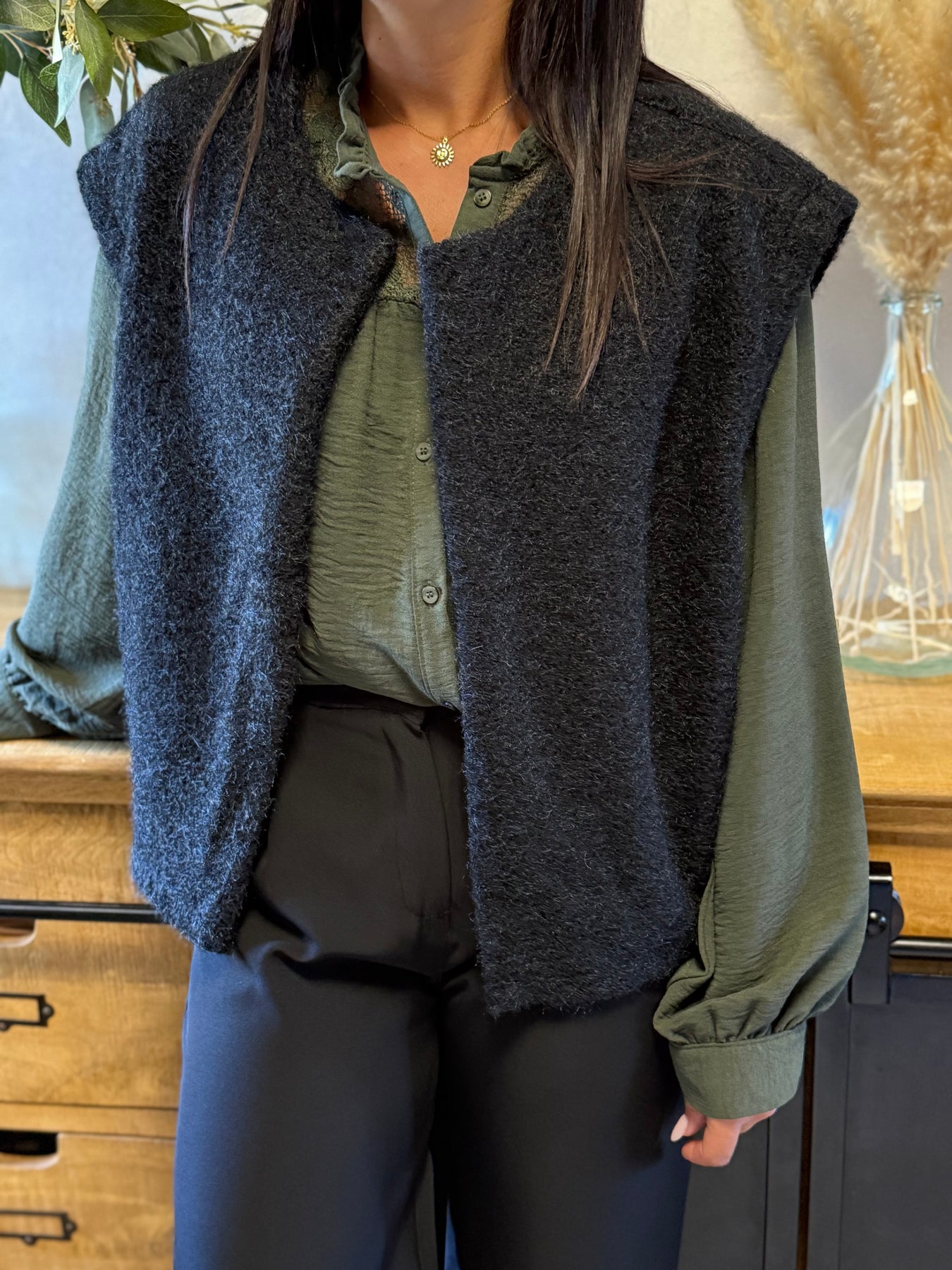 Cette chemise kaki est un basique chic revisité avec ses détails en dentelle et son tombé fluide. Facile à associer, elle se porte aussi bien avec un jean pour un look casual qu’avec un pantalon habillé pour un style plus sophistiqué.