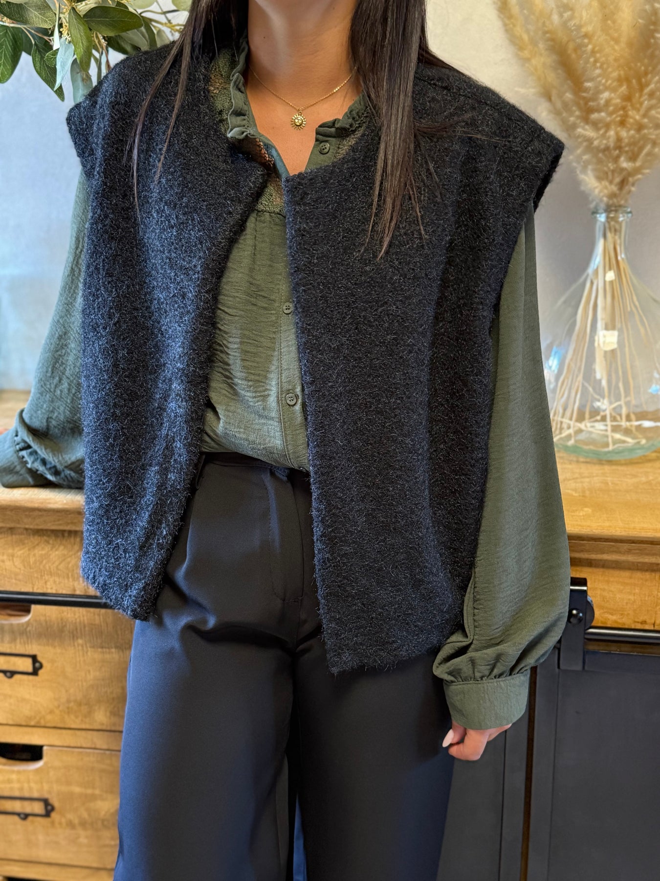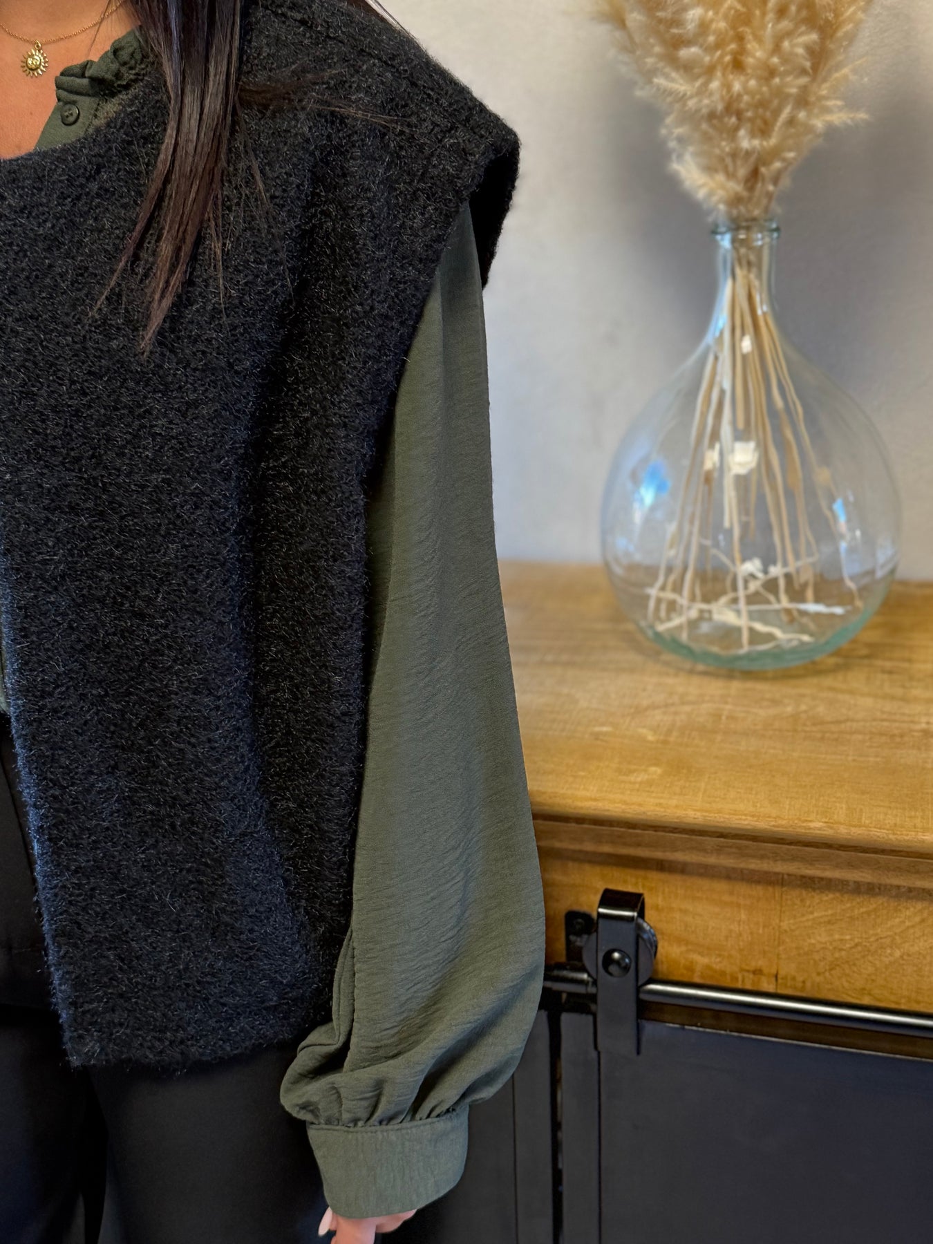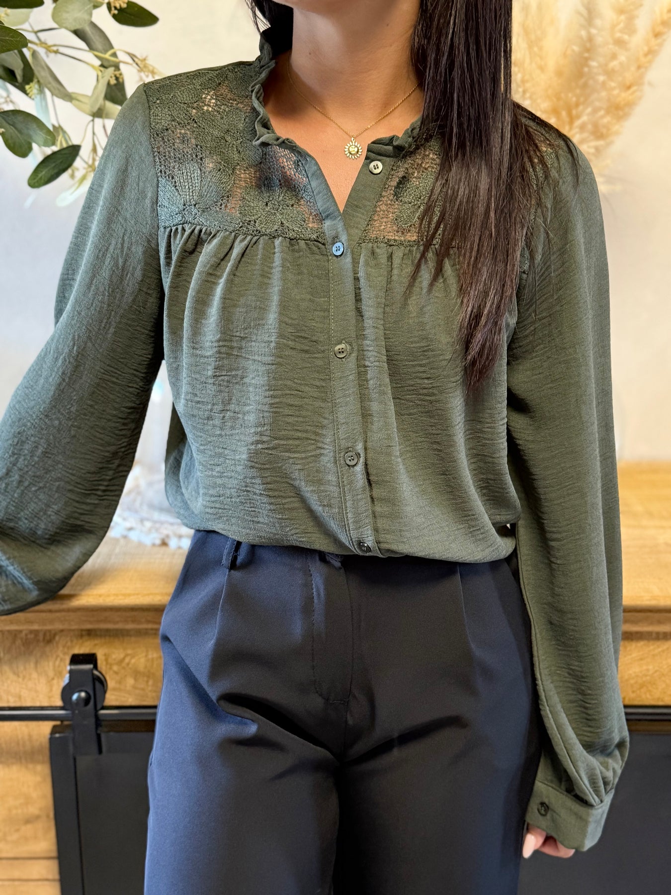 • Chemise kaki élégante avec dentelle ajourée sur le haut