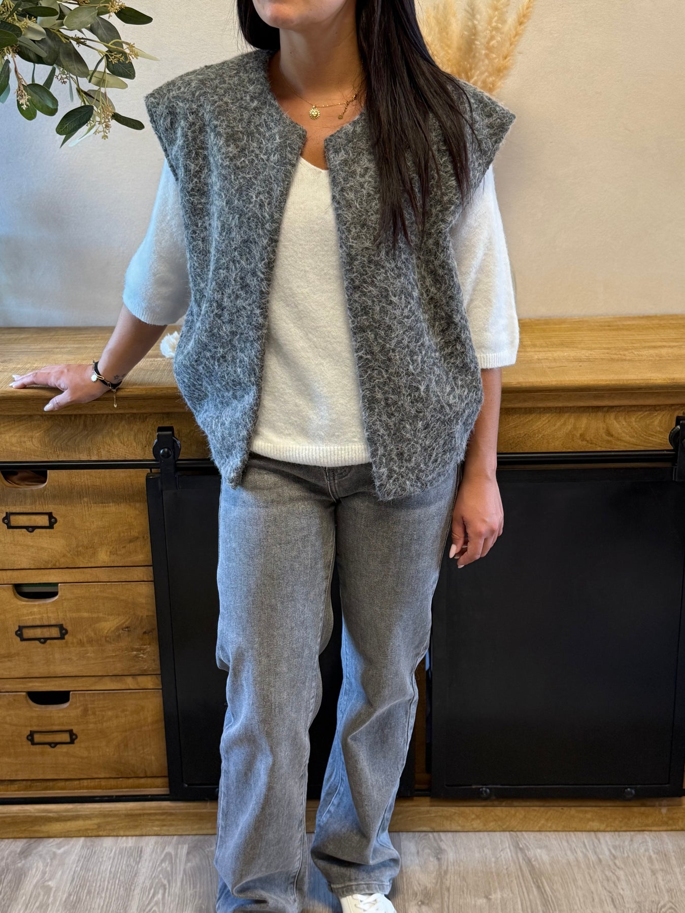🩶 Gilet sans manches gris – Style cosy & tendance