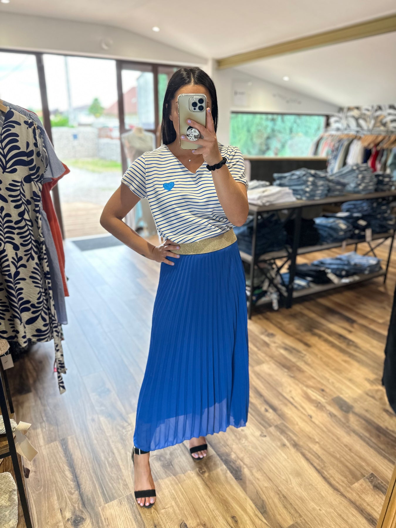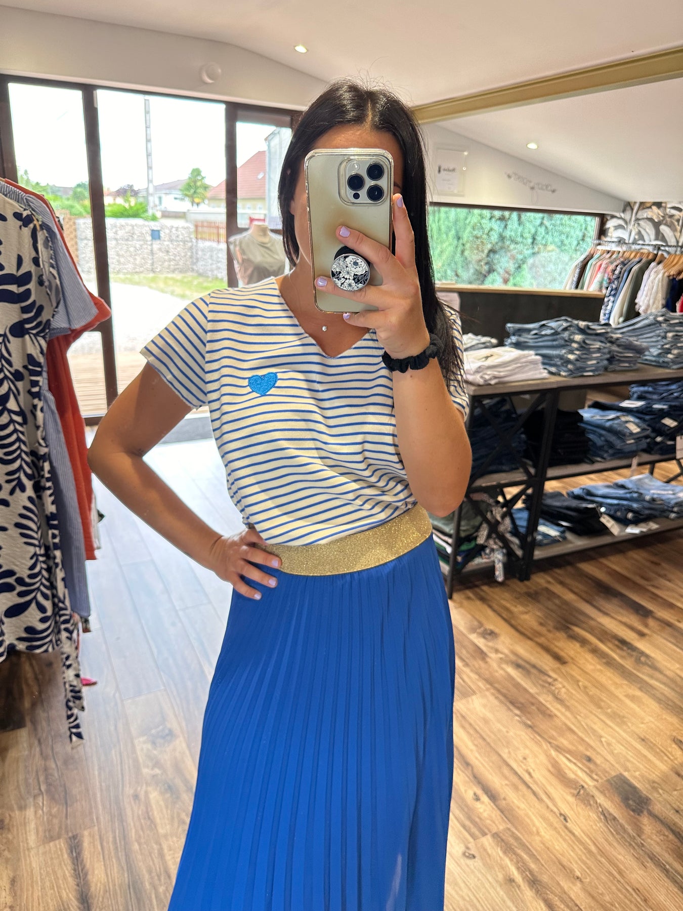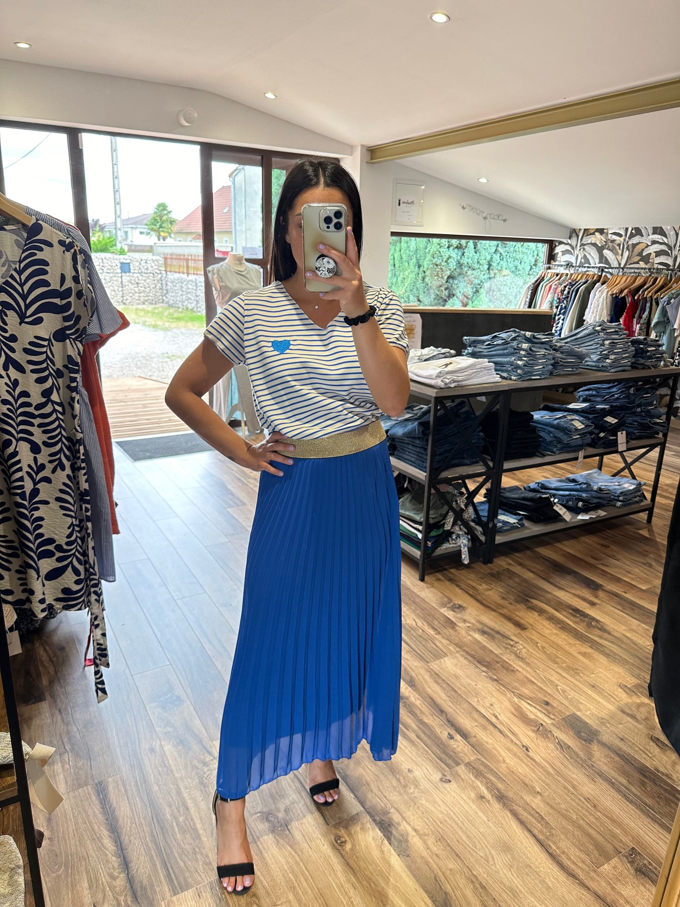 Alicia mesure 1m57 et met du 36 elle porte la jupe avec le teeshirt Melly
