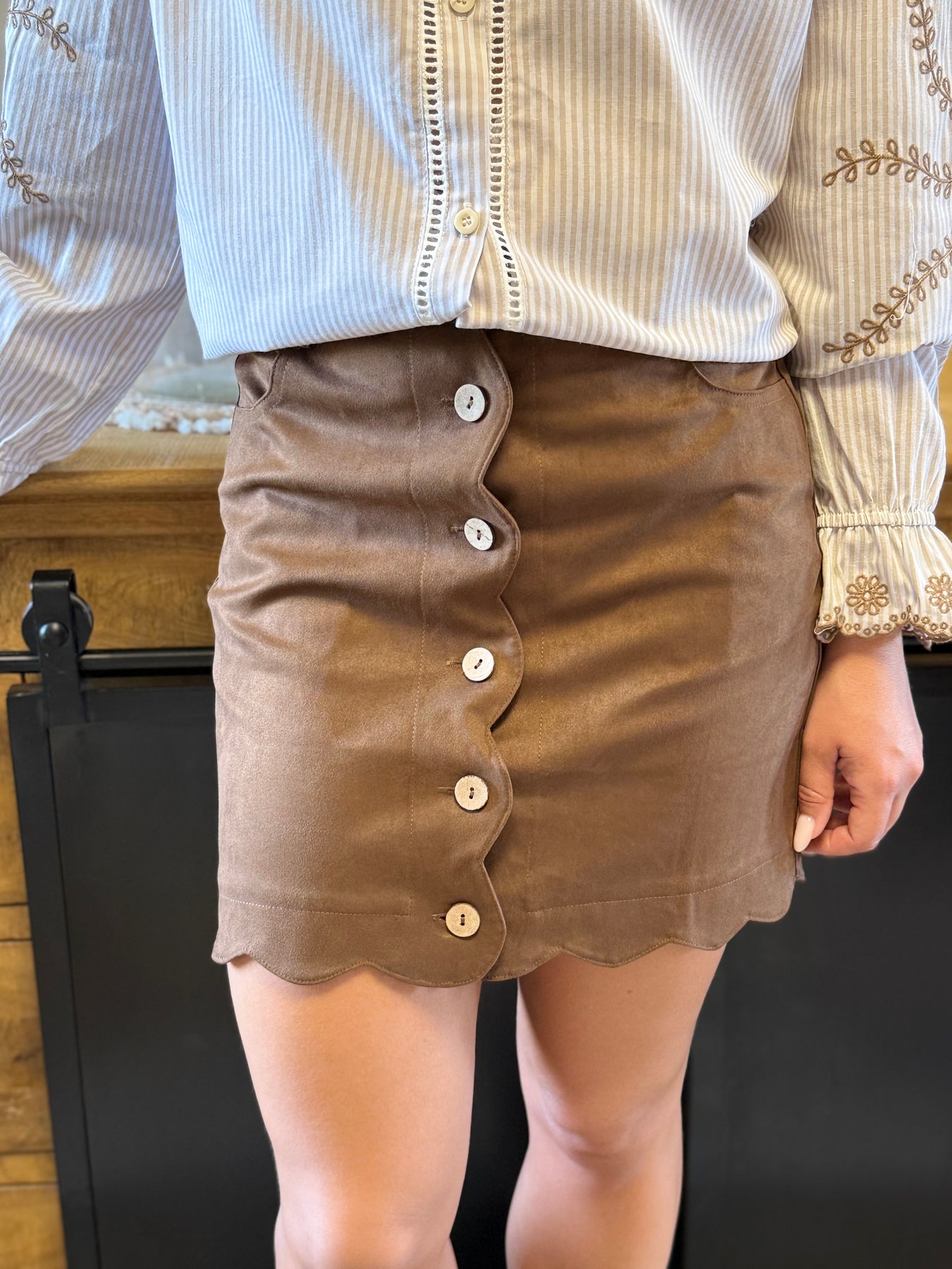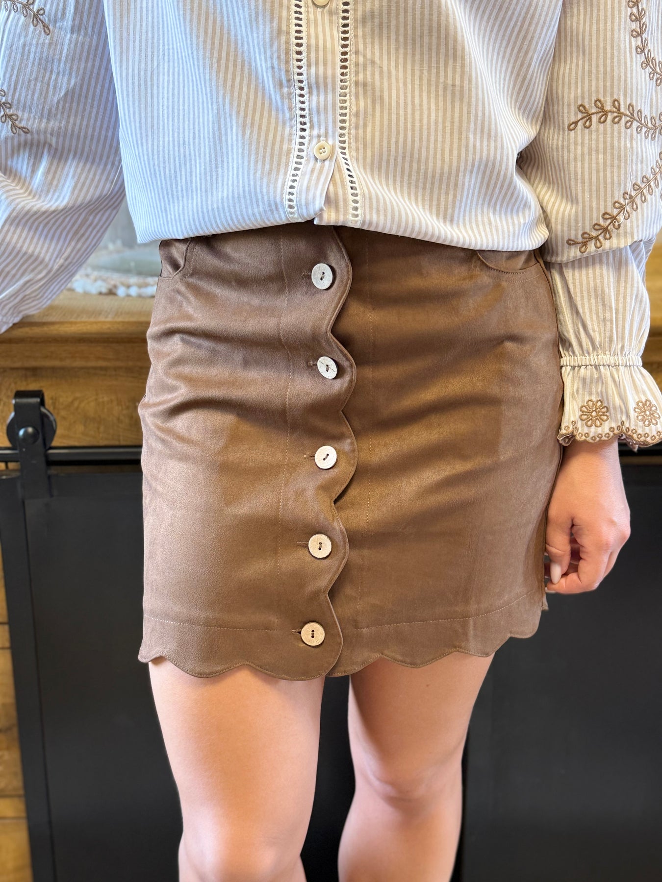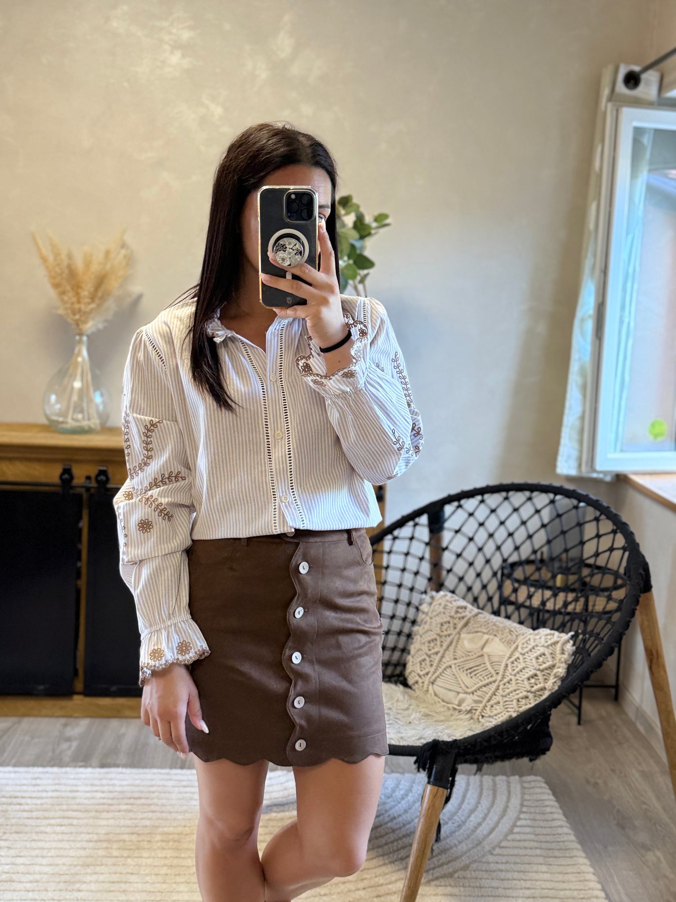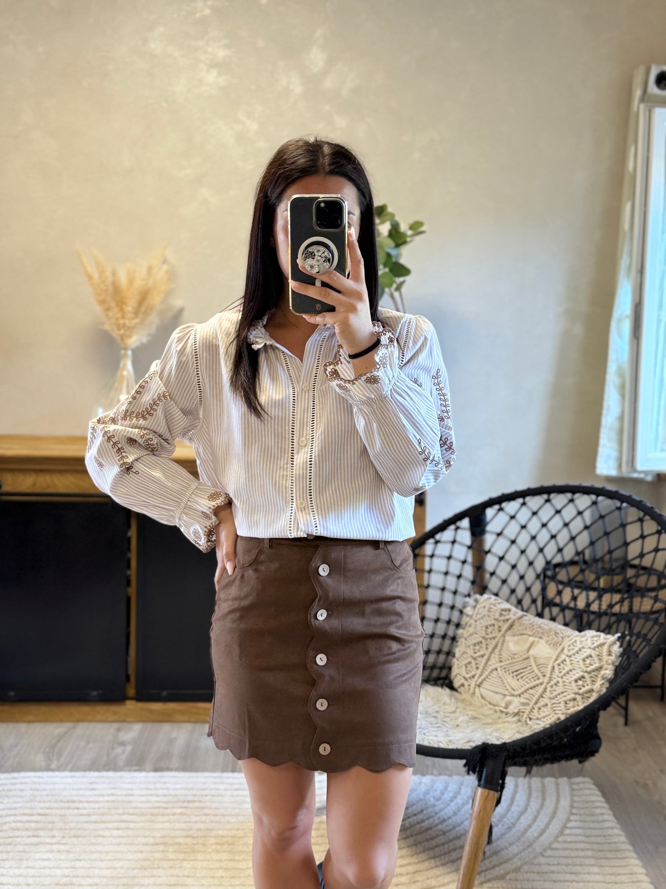 La jupe Kung est la pièce parfaite pour allier chic et originalité ✨. Son boutonage et ses finitions festonnées en font une jupe unique, facile à porter au quotidien avec une chemise habillée ou un pull cosy. Un indispensable pour un look féminin et moderne 🤎.