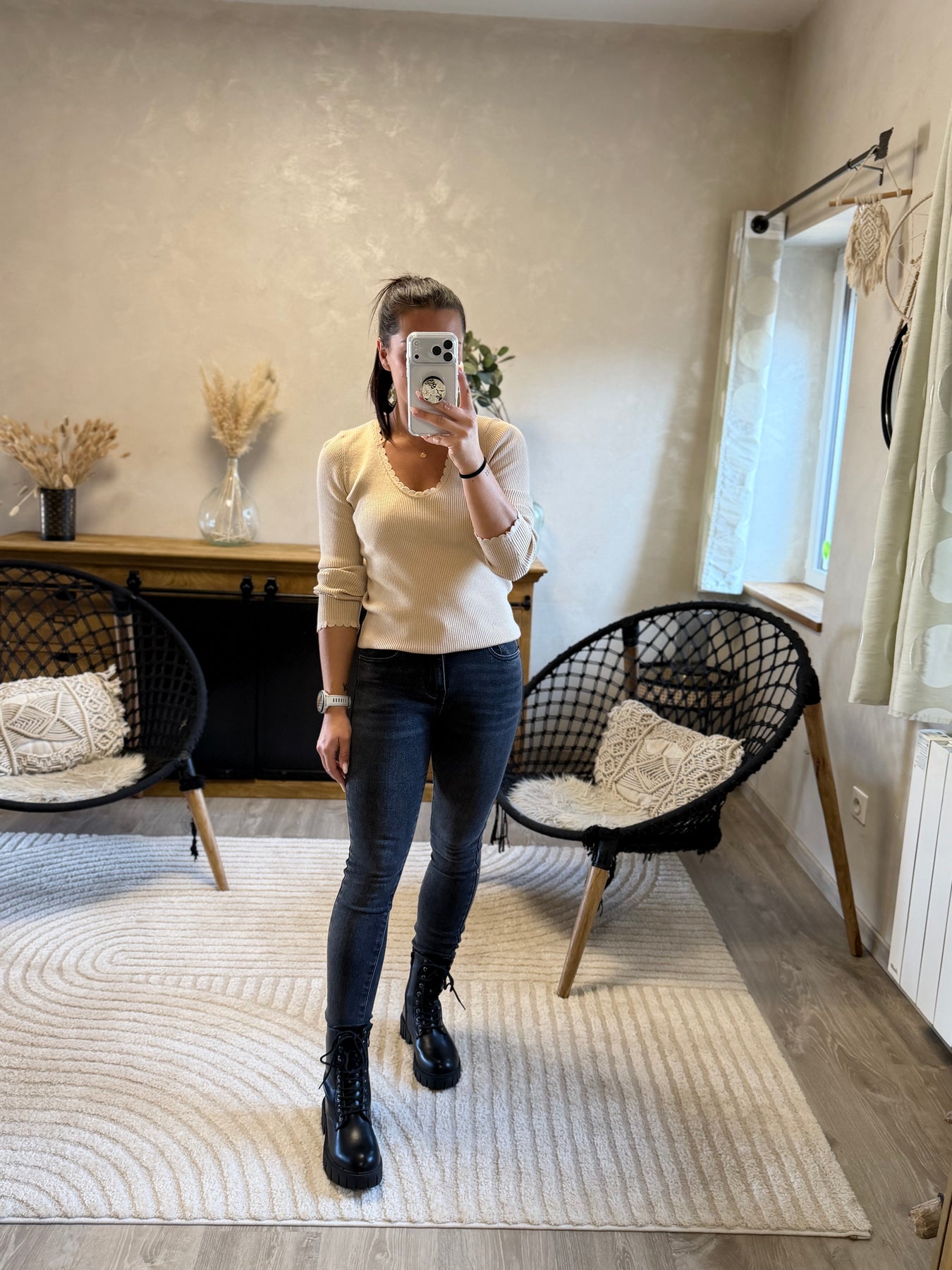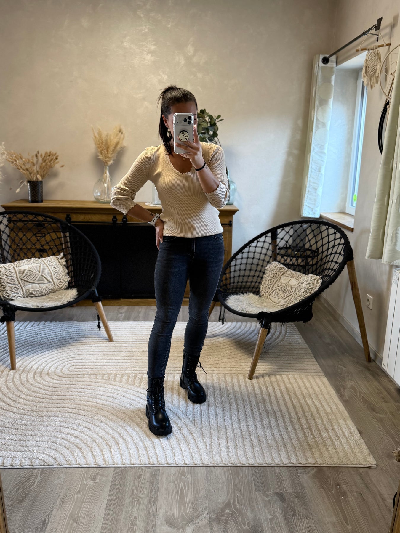 Le pull fin Aragone est un basique revisité avec ses détails festonnés qui apportent une touche féminine ✨. On aime sa maille légère, parfaite pour la mi-saison, et son coloris neutre facile à assortir. À porter aussi bien avec un jean qu’avec une jupe pour un style polyvalent 🤍.