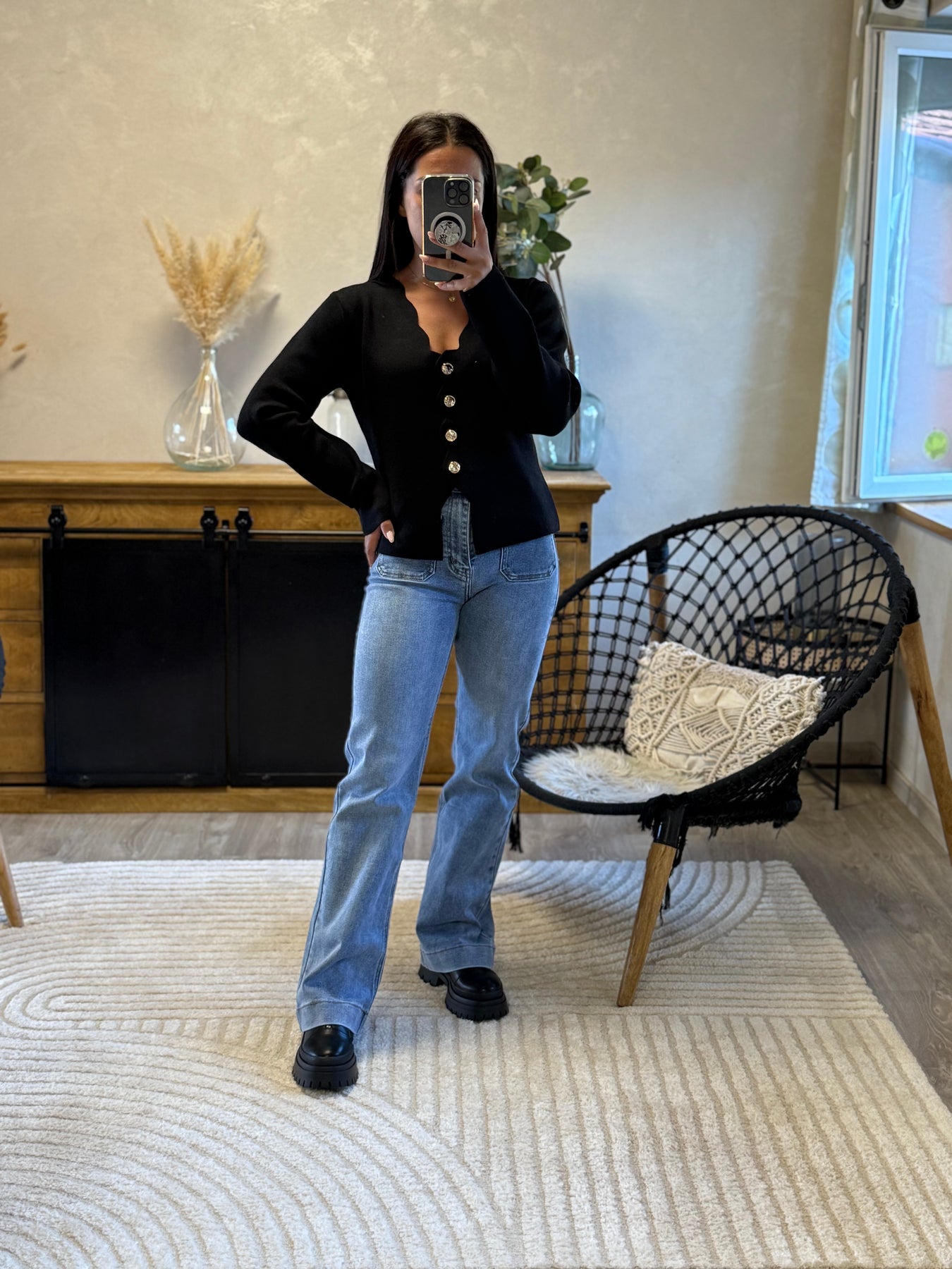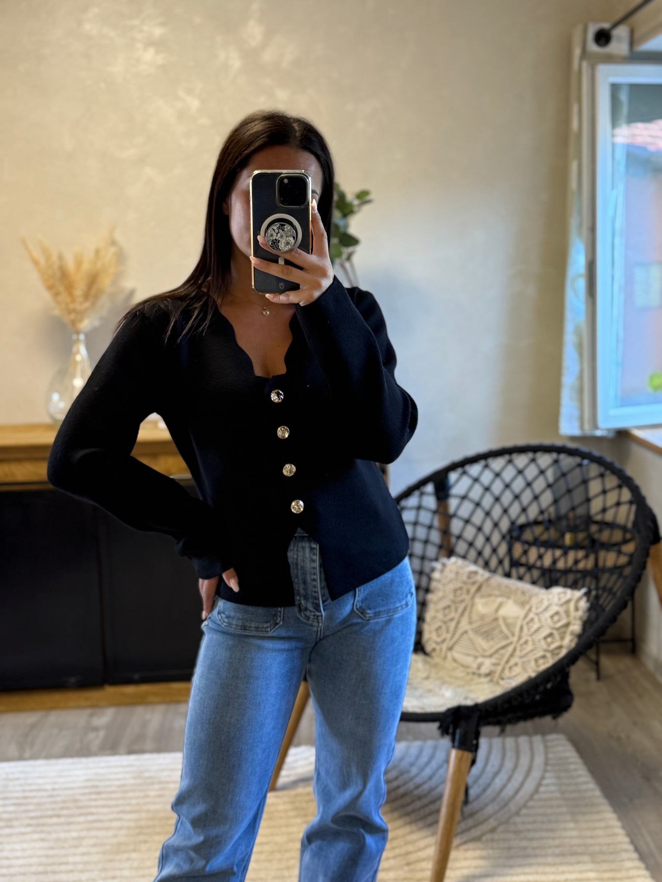 - Boutonnage sur le devant avec de jolis boutons dorés