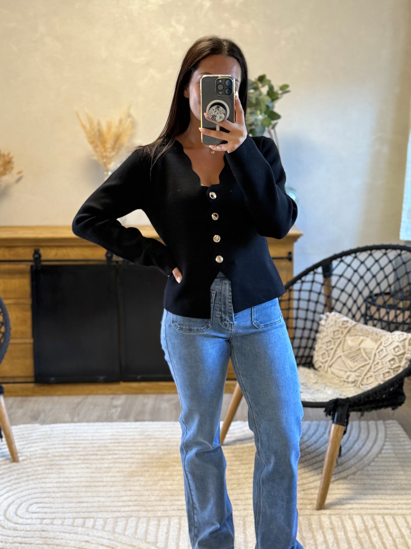 On craque pour sa coupe moderne et son détail d’encolure ondulée qui fait toute la différence ✨. Facile à associer avec un jean pour un look du quotidien, ou avec une jupe élégante pour une sortie, c’est la pièce chic & polyvalente qu’on adore avoir dans son dressing 🖤.