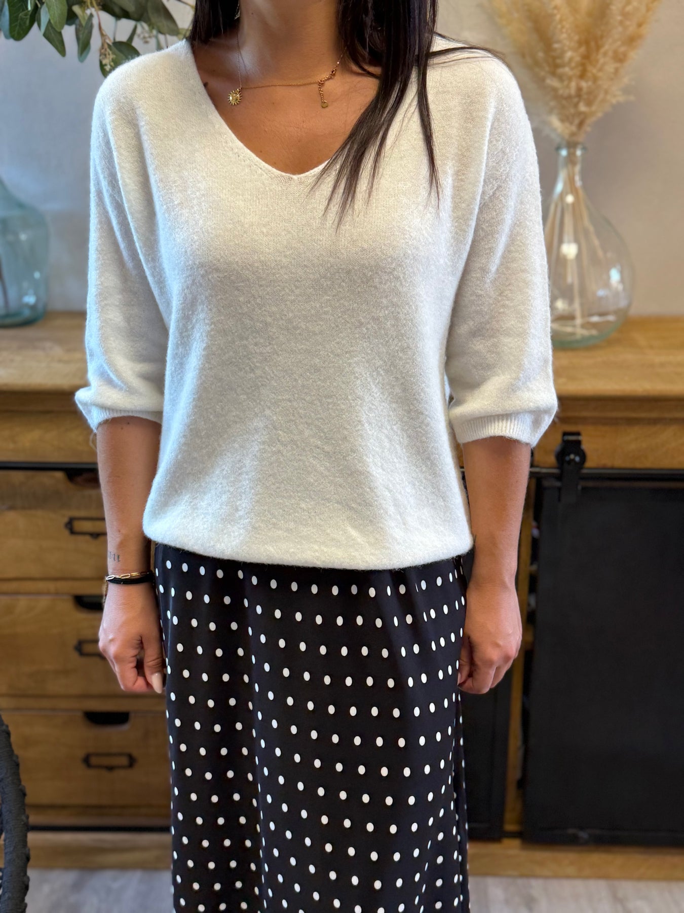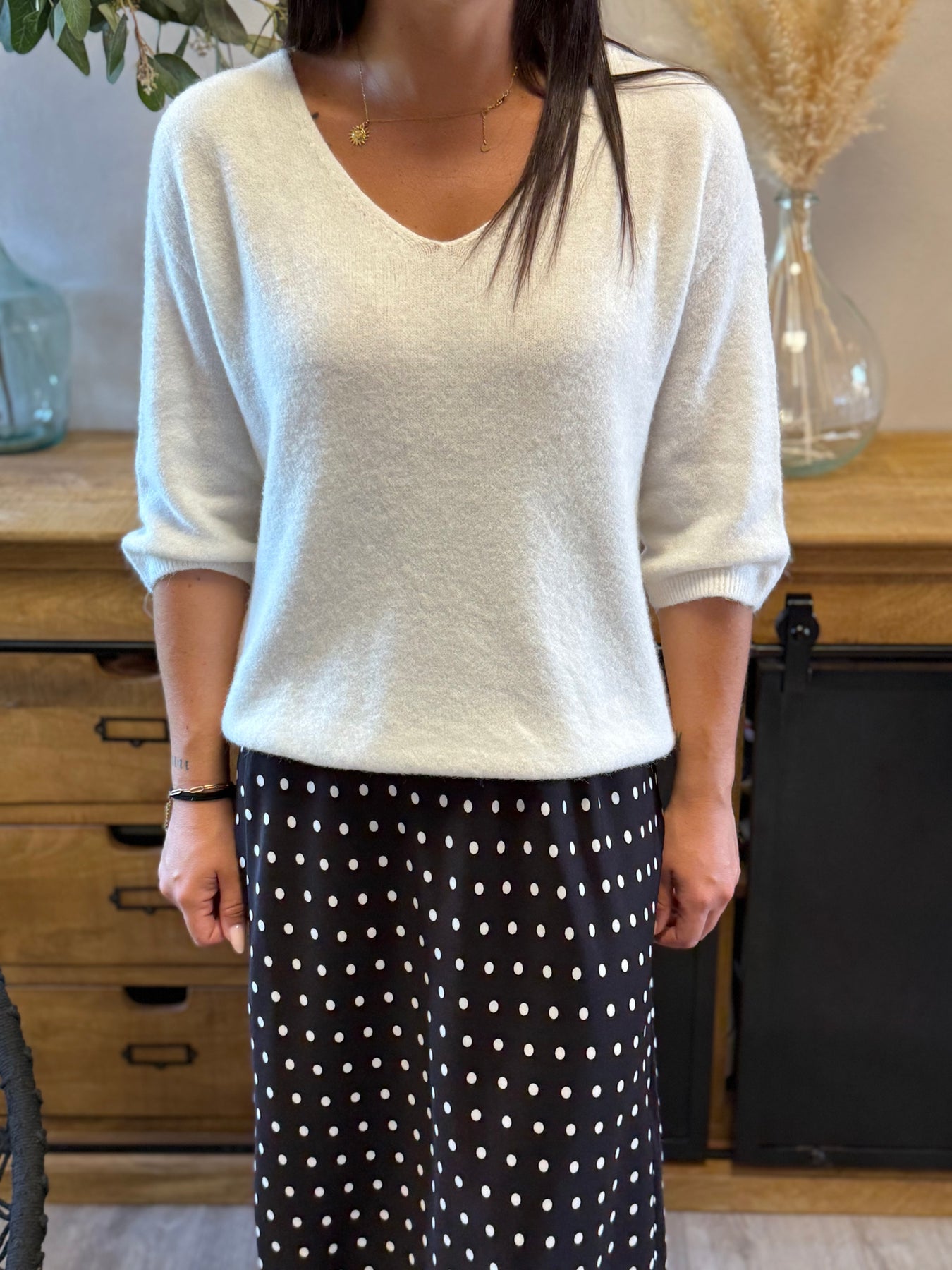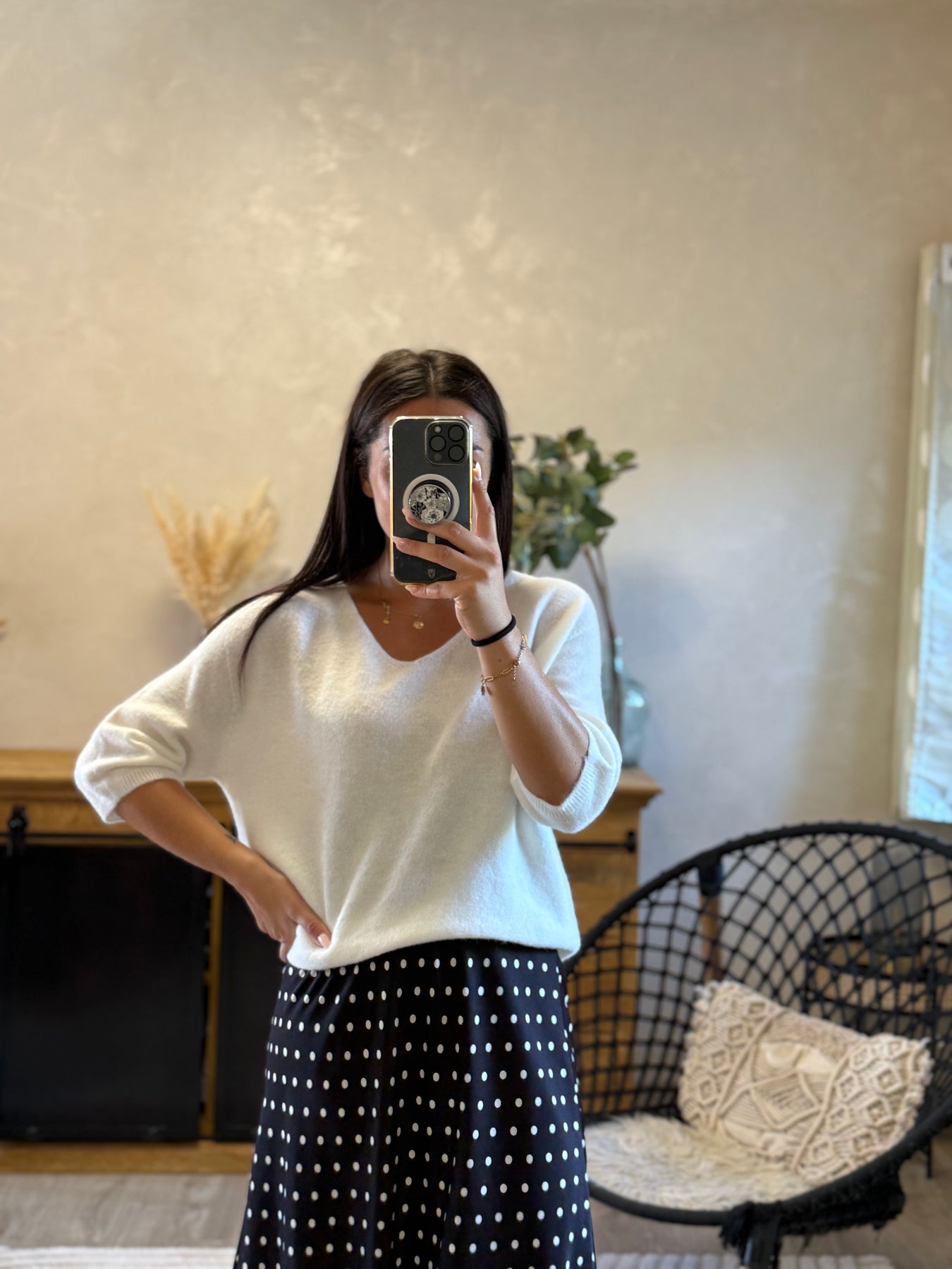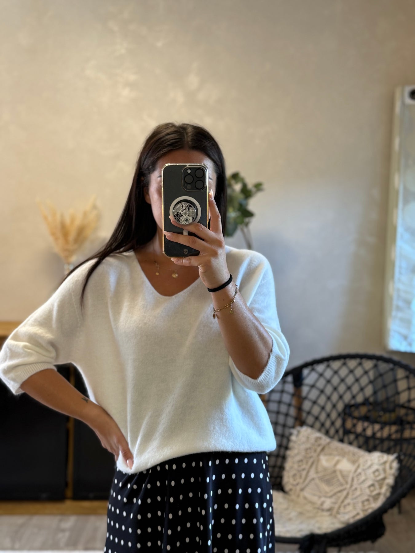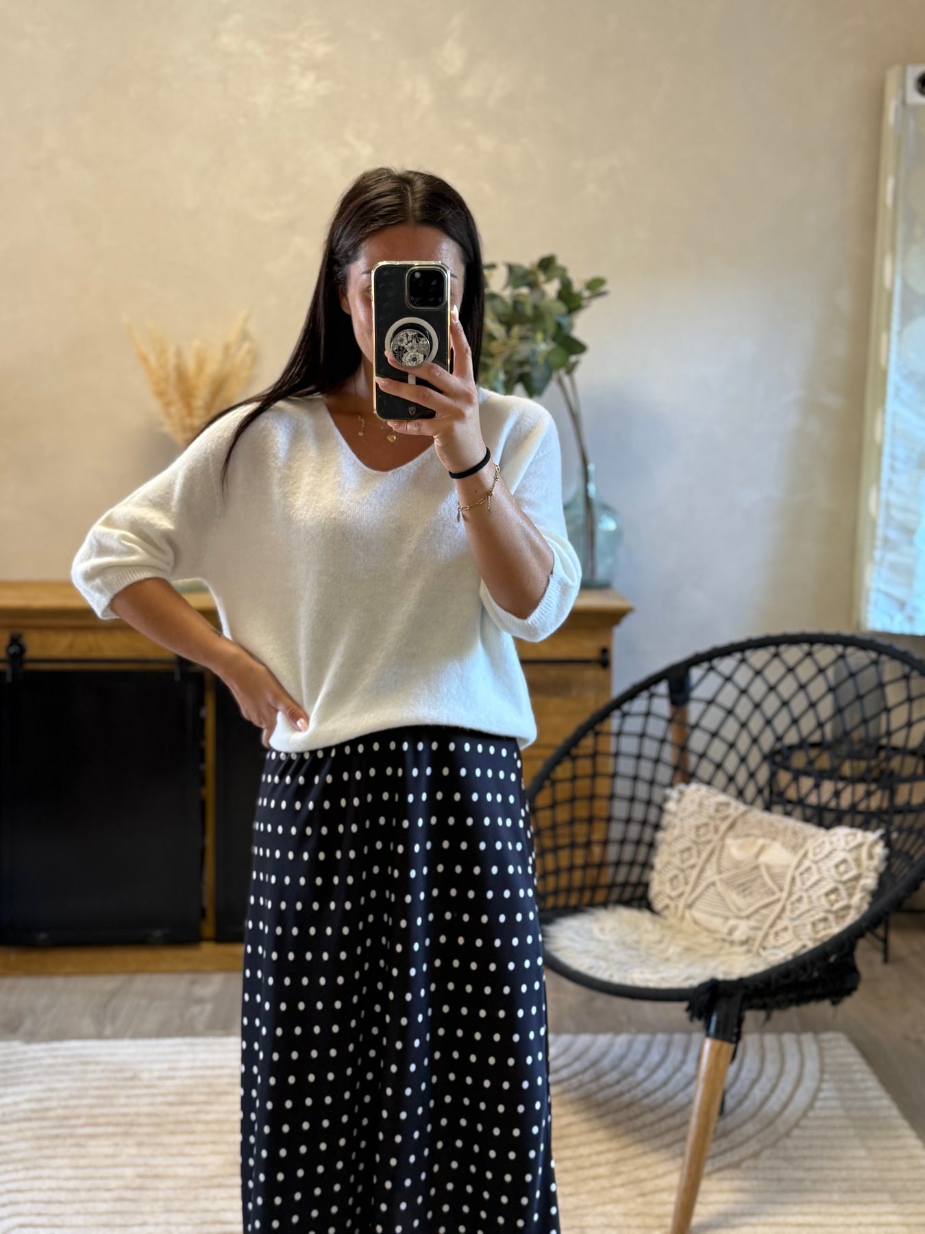 Le pull Siméon est un indispensable du dressing ✨. On aime sa maille légère mais chaude, sa coupe facile à porter et son coloris lumineux qui s’accorde avec tout. Un basique chic qui se mixe aussi bien avec une jupe fluide qu’un jean décontracté 🤍.