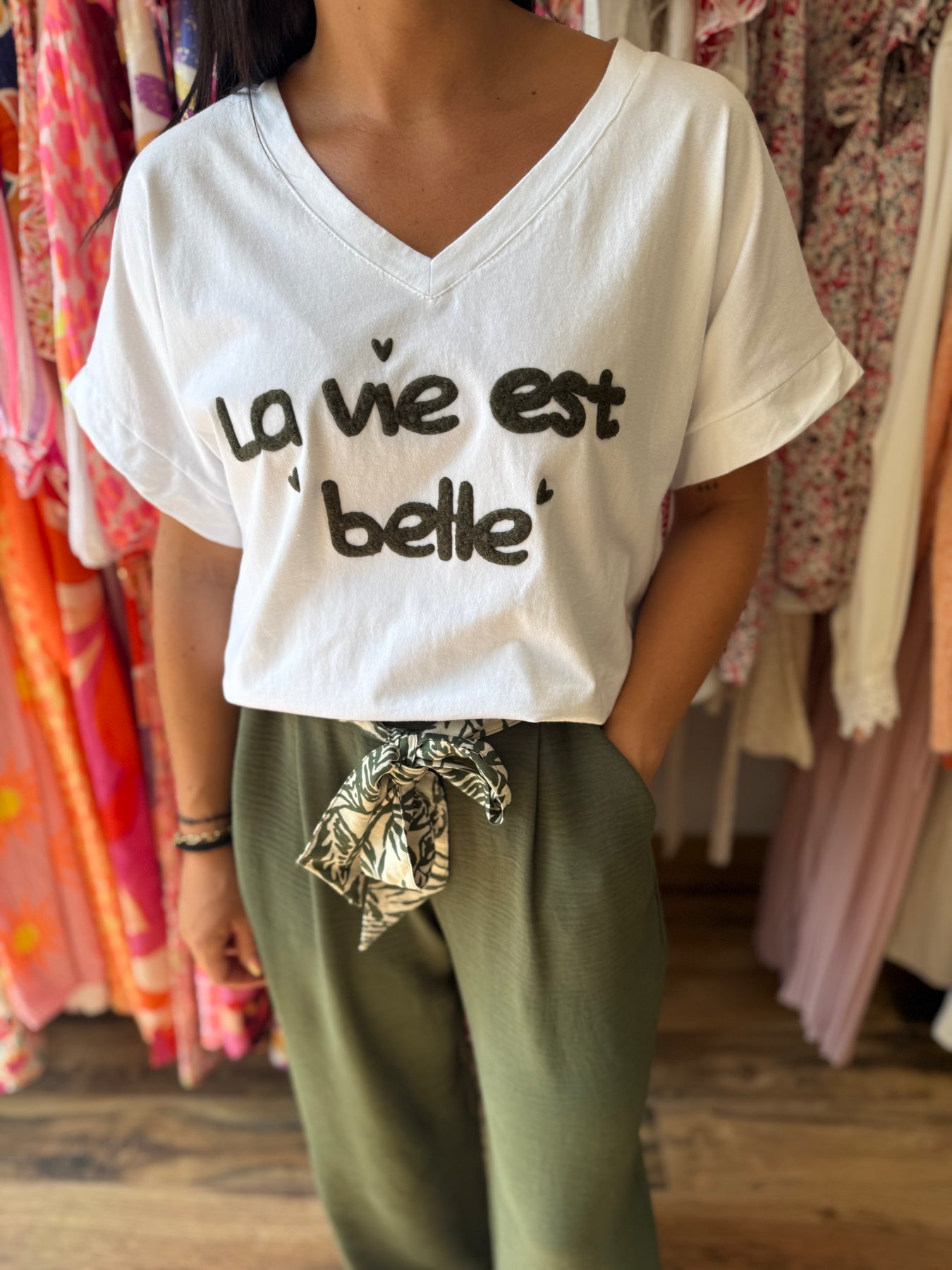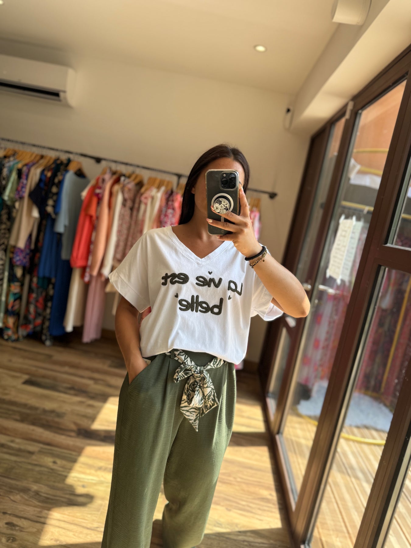 Tee-shirt “La vie est belle” – Version kaki, toujours plein de good vibes