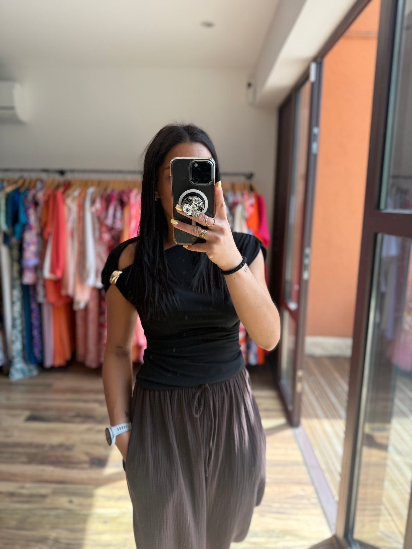 Tee-shirt Linda noir – Élégance minimaliste & allure près du corps (taille unique 34 au 38)